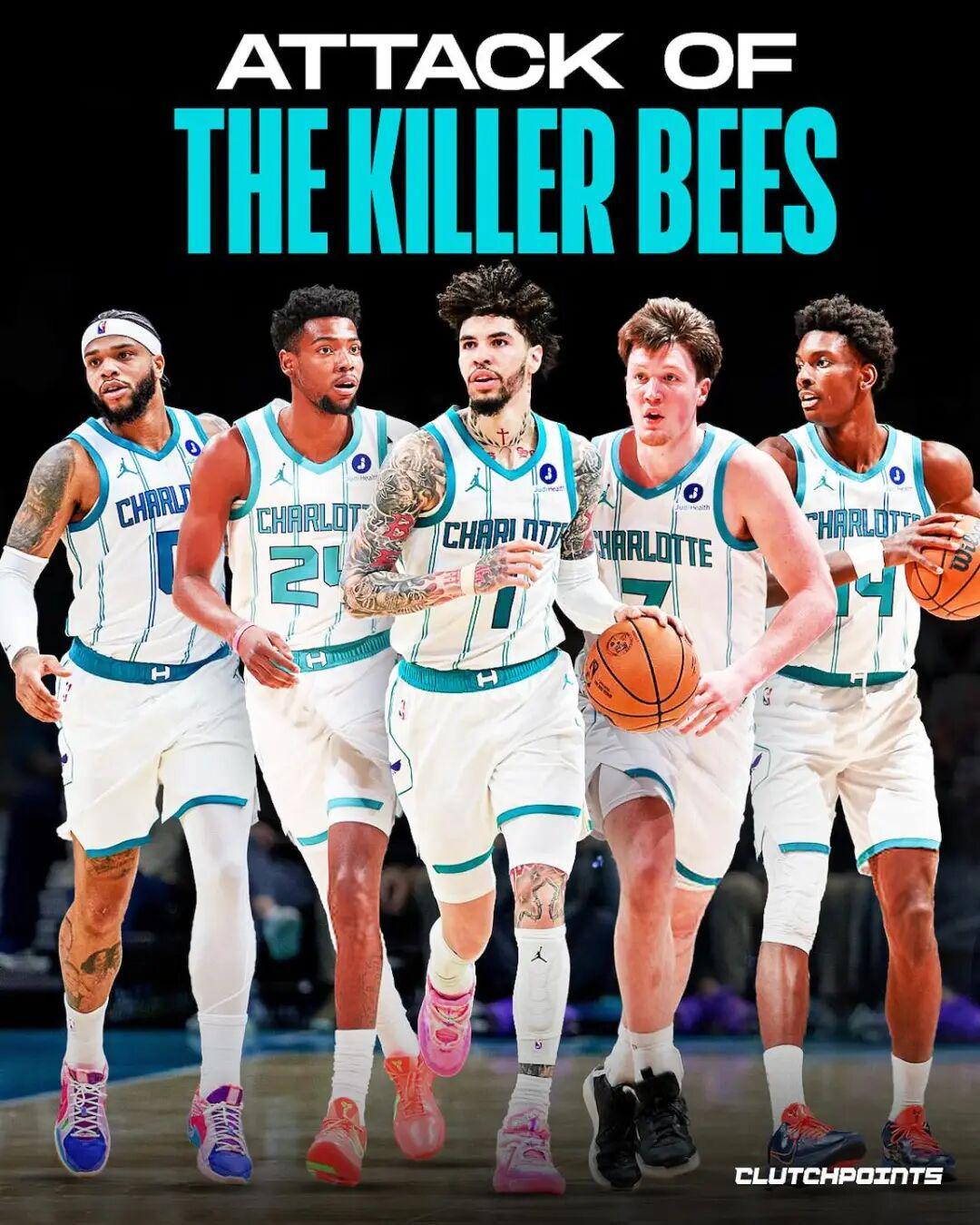 本赛季黄蜂的首发阵容,三球、克努佩尔、米勒、布里奇斯、迪亚巴特同时出战时,黄蜂20胜2负。