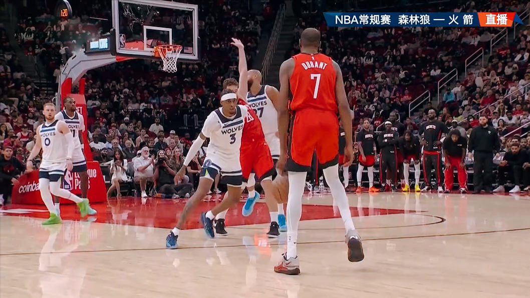 下半场回来,双方起初攻防两端显得很乱,短时间连续的失误、打铁,杜兰特面露疲态,被戈贝尔面对面生断,随后又罕见地两罚不中。而申京的状态也比较糟糕,同样的两罚不中,还被兰德尔狼狈撞倒。不过,森林狼并没有把握住机会,比分始终交替领先。